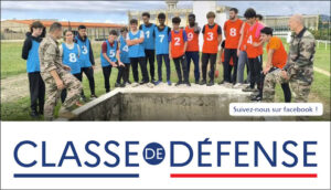 - Les jeunes retenus à l'issue de la sélection s'engagent à participer aux activités de la Classe Défense tout au long de l'année. Cette option, pour des raisons d'organisation et notamment d'accès sécurisés dans les différentes casernes/lieux d'activités, n'est pas "à la carte".
